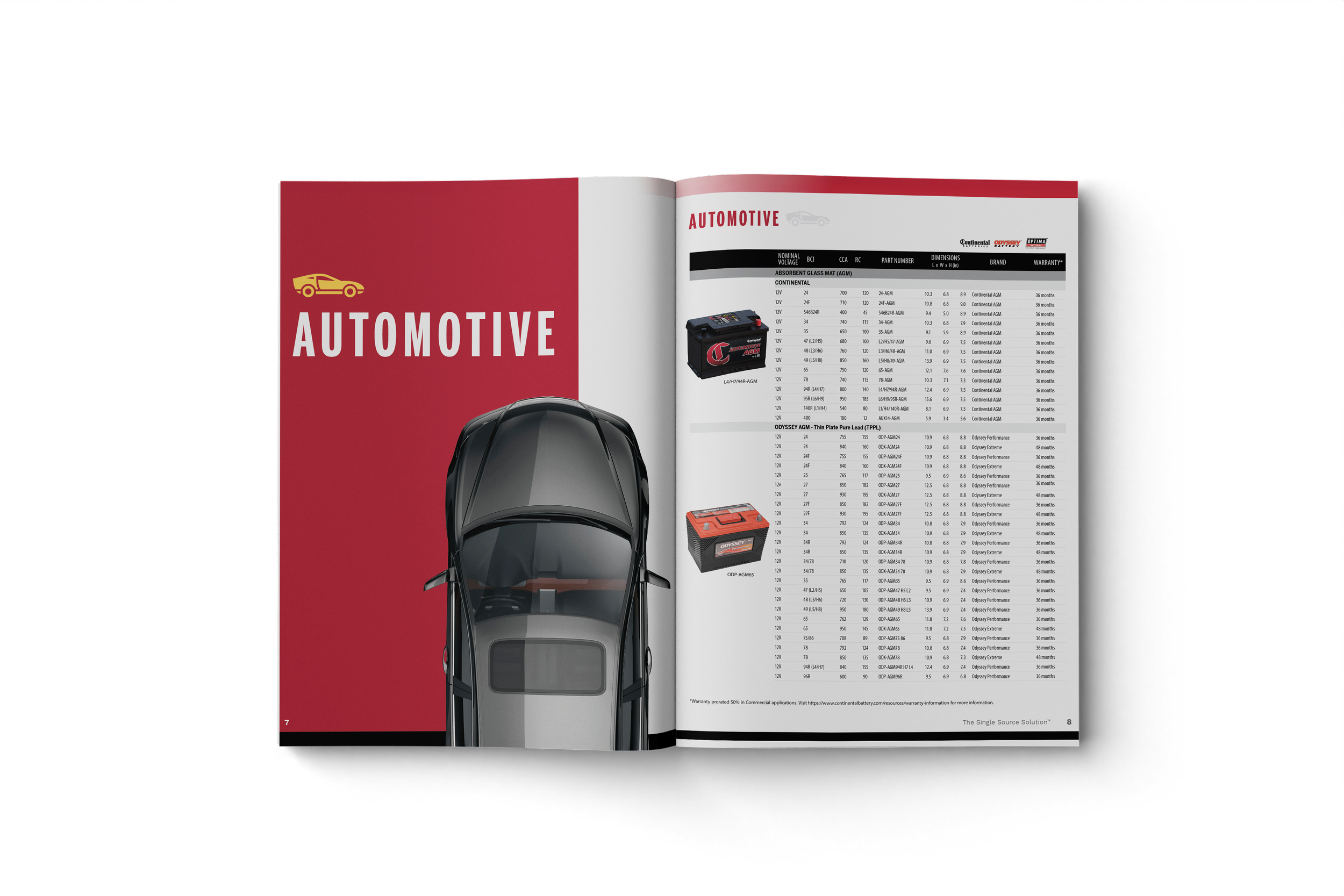 The redesigned catalog introduced a cleaner, more modern visual language while staying aligned with the Continental Battery Systems brand. Removing the heavy textures allowed product imagery and information to take center stage. The new layout system improved clarity, organization, and overall visual appeal, creating a catalog that feels contemporary and easier to navigate.