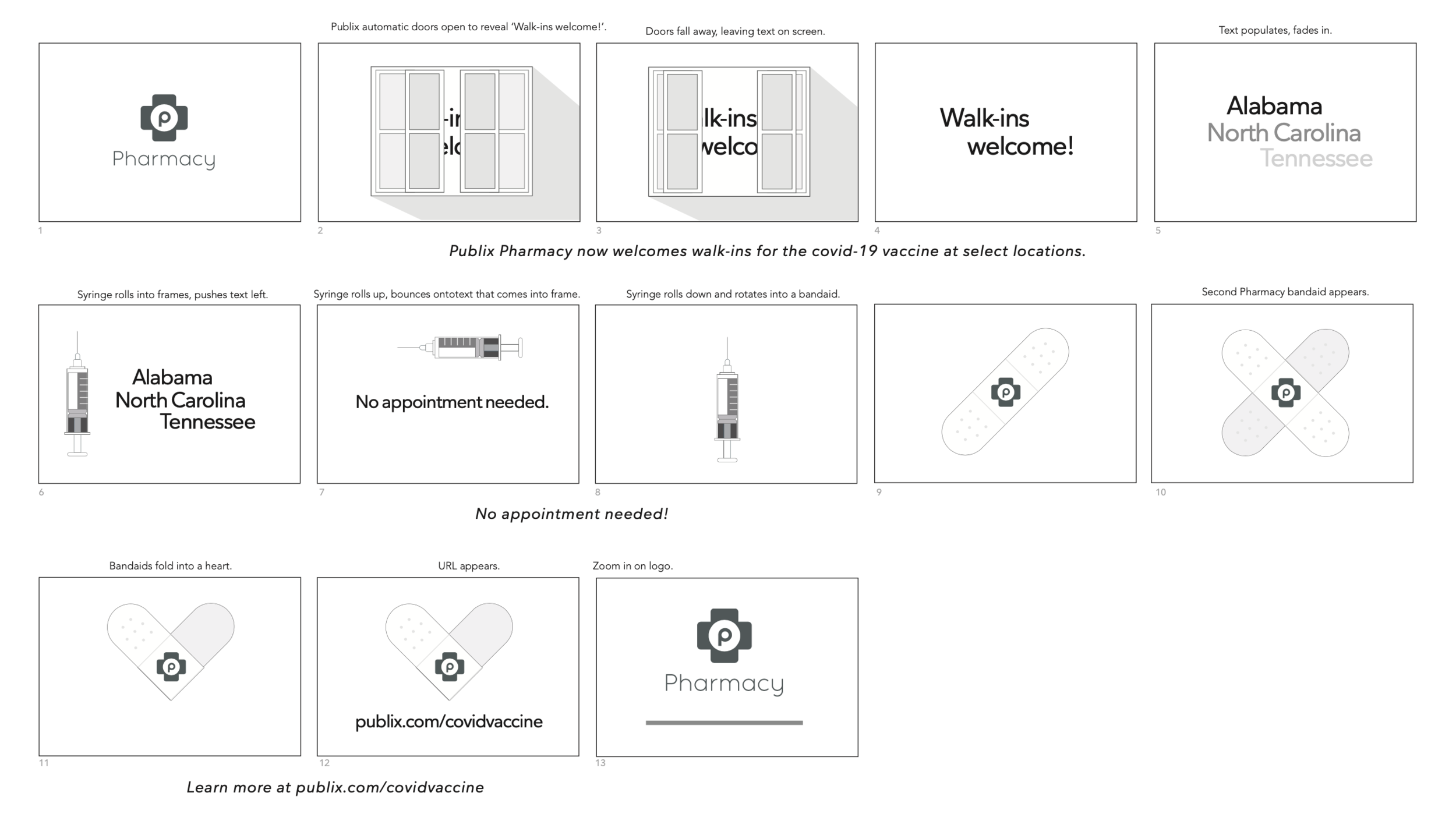 Drive awareness that the COVID-19 vaccine was available at Publix Pharmacy through both online appointments and walk-in visits, while delivering clear and trustworthy messaging during a time of rapidly changing public health information. The campaign needed to balance urgency with reassurance, work within regulatory guidelines, and remain consistent across a high volume of touchpoints. Customers had to quickly understand availability, feel confident in the process, and know exactly how to take action whether in-store, online, or on mobile.